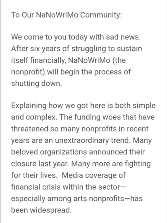 Now, after 25 years, the organisation behind NaNoWriMo is shutting down for good.